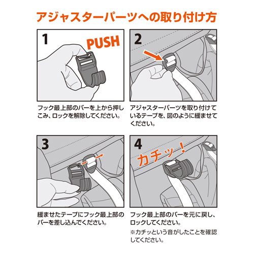 「アジャスターパーツ」があるバックパックへの取り付け方