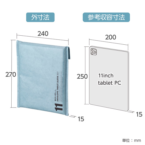 ハクバ プラスシェル エンベロープ タブレットスリーブ 11インチ ブルー SP-ELTS11BL 4977187328233 ケース バッグ Tyvek(タイベック)(R)採用