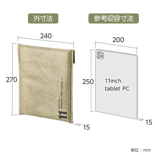 ハクバ プラスシェル エンベロープ タブレットスリーブ 11インチ オリーブ SP-ELTS11OV 4977187328240 ケース バッグ Tyvek(タイベック)(R)採用