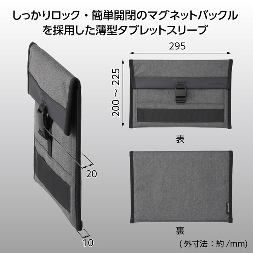 しっかりロック・簡単開閉のマグネットバックルを採用した薄型タブレットスリーブ