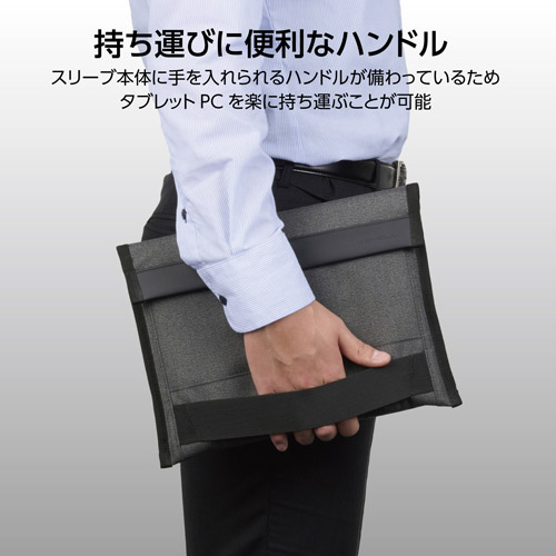 スリーブ本体に手を入れられるハンドルが備わっているため、タブレットPCを楽に持ち運ぶことができます。