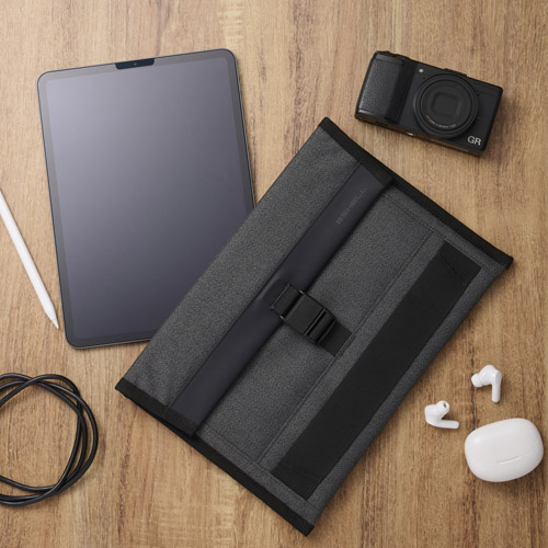 しっかりとロックをしながら、片手で素早く開けられるマグネットバックルを採用した、薄型設計でバッグの中に入れてもかさばりにくいタブレットスリーブです。