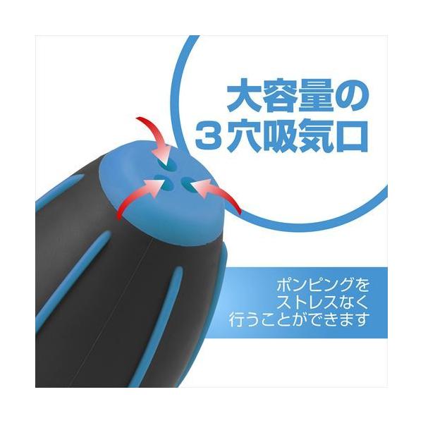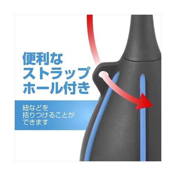 大容量の吸気口 独自の3穴吸気口により大容量のポンピングをストレスなく行うことができます。 | 便利なストラップホール付き ノズル付け根には持ち運びに便利なストラップホールを設けており、紐などを括り付けることができます。 |