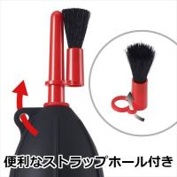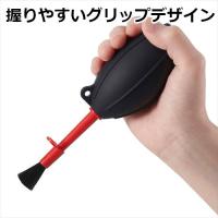 | 強力エアーとブラシでゴミ・ホコリを取り除く、シリコン製ブロアー レンズやカメラ、電気製品などのクリーニングに適したブラシ付きシリコン製ブロアー。ノズルの先端にはブラシを装着可能です。 | 握りやすいグリップデザイン ブロアー本体に立体的なライン形状を施しており、ポンピング時に滑りにくくしっかりと握ることができます。横にして置いた時の転がりの抑制にもなります。 |