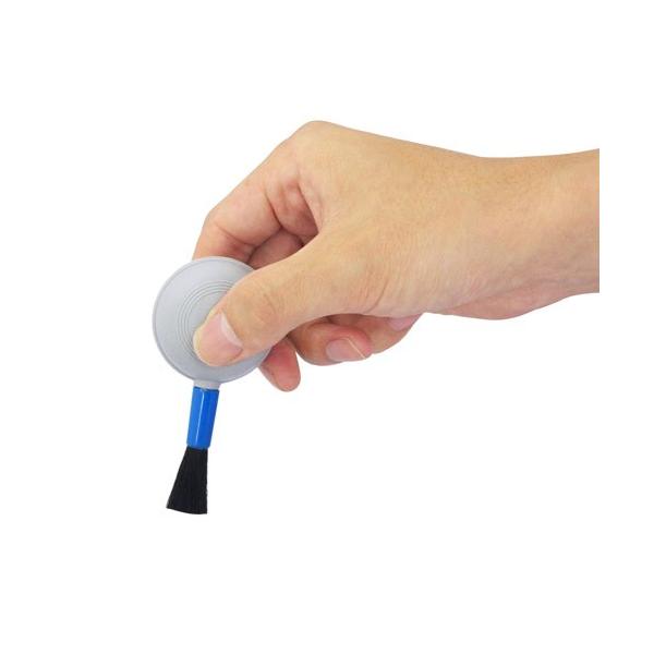 | 携帯性に優れたコンパクトブロアーブラシ 耐久性の高いEVA素材でできたコンパクトで持ち運びにも便利なタイコ型ブロアーとブラシのセットです。おおまかなゴミをブラシで取り除き、ブロアーでこまかいホコリを吹き払います。ブラシ部分を取り外せばより効果的にホコリを吹き飛ばすことができます。 | コーティングにもやさしいクリーナー液 液晶画面などはもちろん、レンズにも使えるように調整したノンアルコールで環境にやさしい、非イオン系界面活性剤混合のクリーナー液です。クリーニングペーパーに1〜2滴程度滴下(ペーパーが湿る程度)してお使いください。※直接、清掃面に垂らさないでください。拭きムラの原因になります。 |