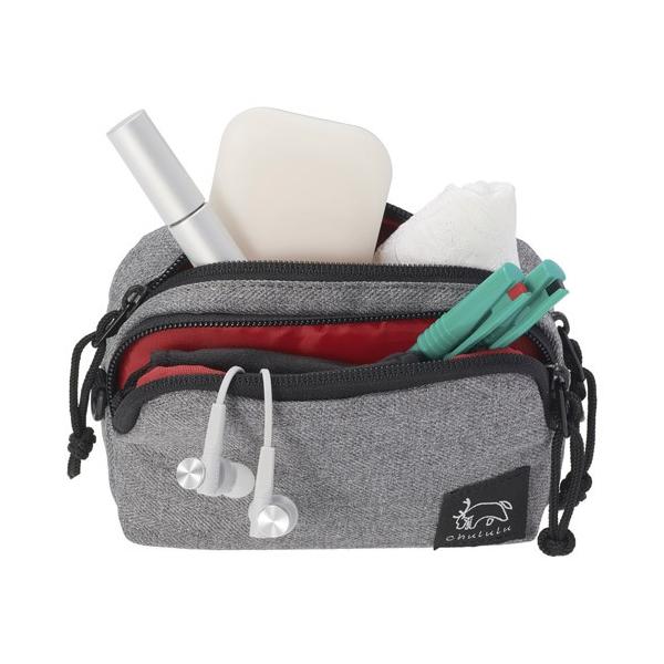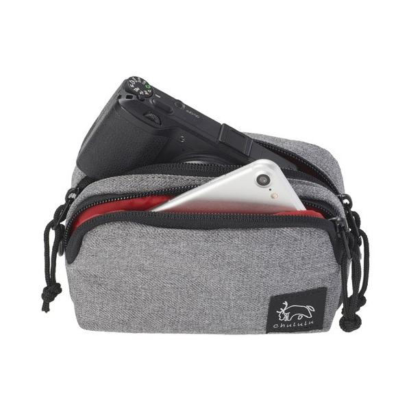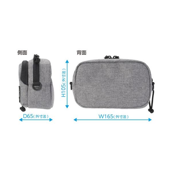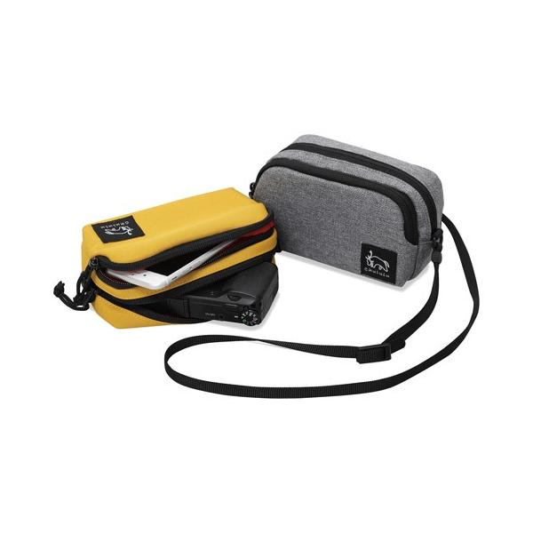 | コンパクトでカジュアルなデザインのマルチポーチ コンパクトカメラやスマートフォンのほか、日常的に使用する小物を収納するのにも便利な、コンパクトでカジュアルなデザインのポーチです。(写真は左からマスタードとヘザーグレー) | カメラやスマートフォンの収納に メインポケットにはコンパクトカメラ、前面ポケットにはスマートフォンの収納が可能です。 |
