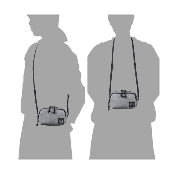 | 小物の収納にも◎! 日常的に使用する小物を収納するのにも便利です。(写真はヘザーグレー) | 長さ調節可能なストラップ 付属のストラップは長さ調節が可能でコーディネートに合わせて斜め掛けも肩掛けも可能です。(モデル身長155cm) |