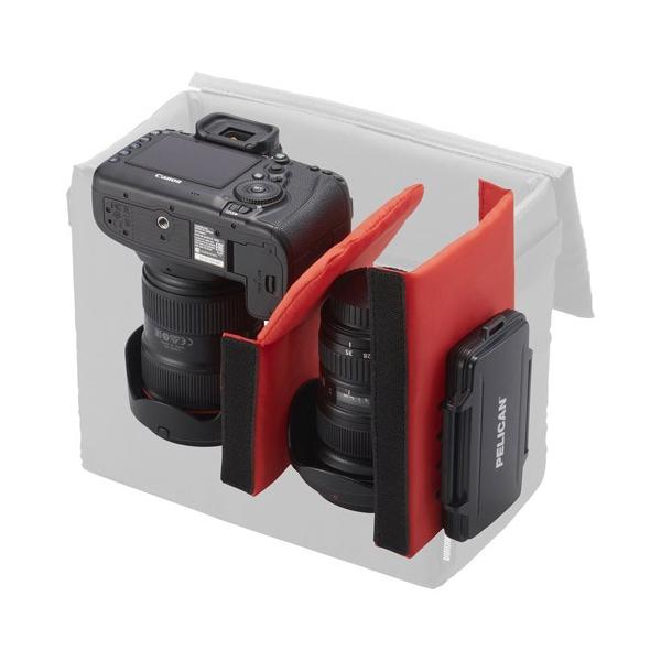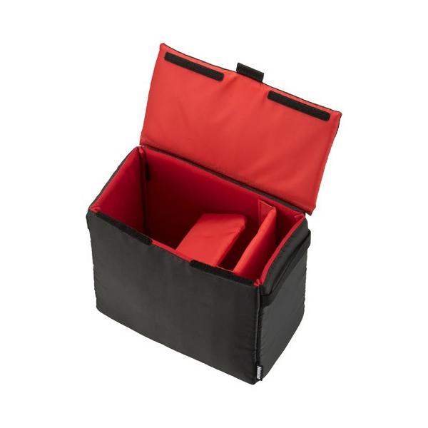 | 普段使いのバッグをカメラバッグに! そのまま入れるだけでいつものバッグがカメラバッグに早変わり。全面の厚いクッションが機材をしっかり保護します。 | 機材に合わせて調整可能な仕切り 収納する機材に合わせて面ファスナーで移動が可能な仕切りが2枚付属しています。 |