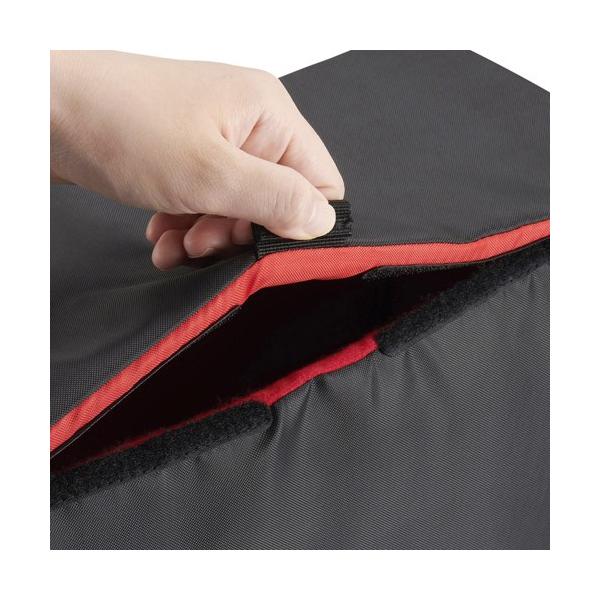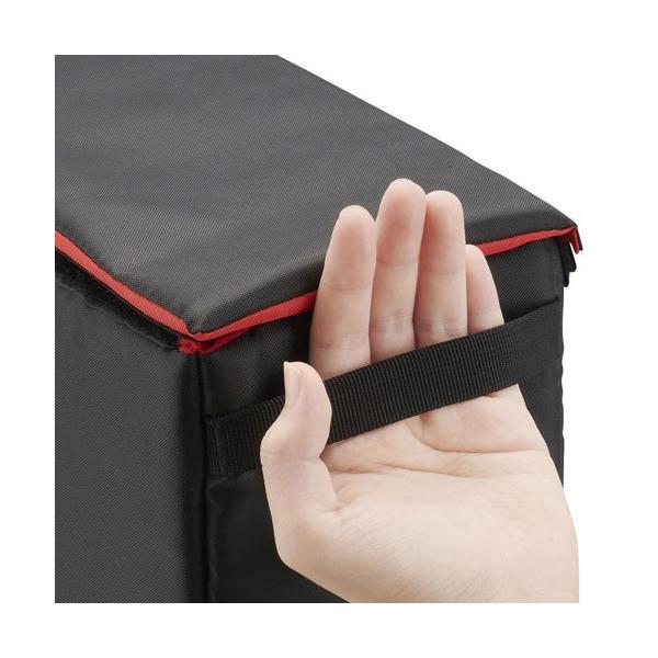 | 取り外し可能な蓋 クッション入りのフタはホコリの侵入や上からの衝撃から守り、不要な時は取り外しが可能です。 | 便利なパーツ類 天面にはバッグに収納した際にも開閉しやすいツマミ付き、バッグからの取り出しなどに便利なサイドハンドル。 |