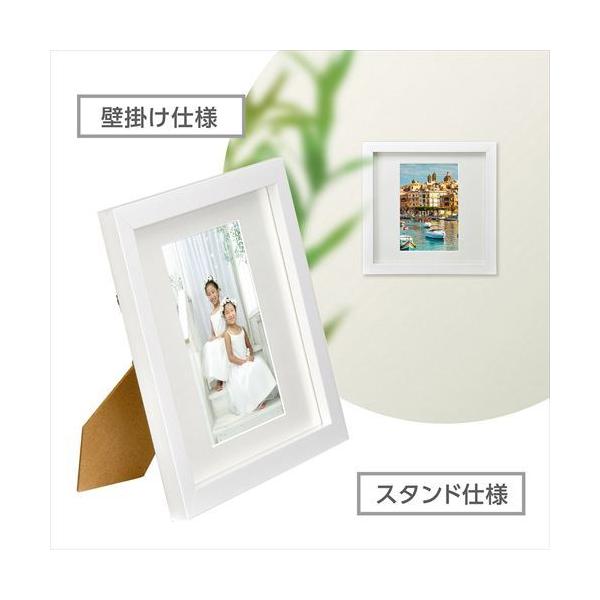 落ち着いたカラーリングと直線的でシンプルな額縁のデザインで、お部屋のコーディネートに合わせやすいスクウェア額縁。マット紙の向きを替えれば、タテ・ヨコどちらの向きの写真にも使用できます。