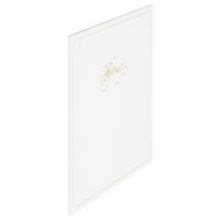 | 使う場面を選ばないシンプルな表紙 シンプルな表紙なので、入学式や結婚式から日常のお祝いまで場面を選ばずお使いいただけます。 | エンボスの入った表紙に金の箔押し 金の箔押しで入れた表紙カットが、大事にしたい写真をより趣きのあるものへと演出します。 |