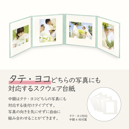 タテ・ヨコどちらの写真にも対応するスクウェア台紙
