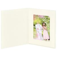 中額には表紙と同じ紙を使用し、シンプルなビク抜きを採用。中額の外周に施した空押しのライン装飾が、写真を引き立たせます。