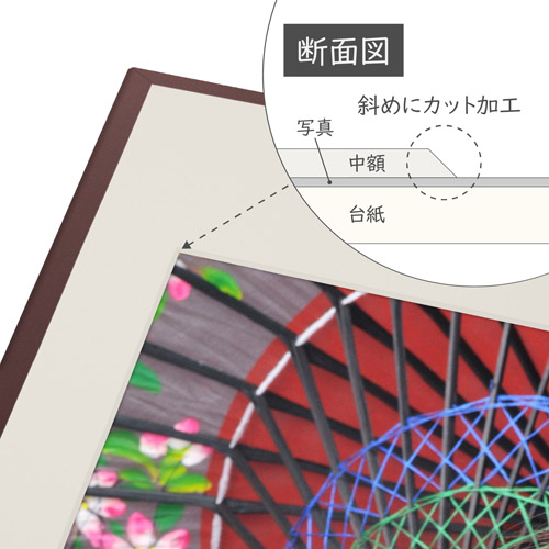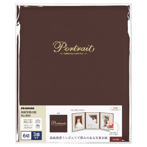 写真を引き立たせるVカット加工![]() 中額の中抜きには奥行き感のあるVカット加工を採用し、写真をより上品に引き立てます。 | サイズ![]() 6切サイズのタテ向き写真用写真台紙です。 |