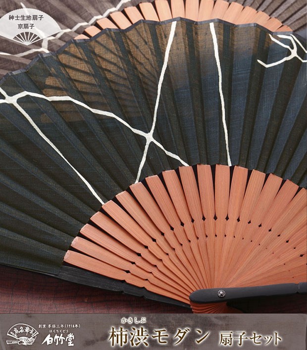 扇子 メンズ 男性 柿渋モダン扇子セット 扇子袋付き 京扇子 父の日 名入れ プレゼント おしゃれ 創業1718年 京都老舗 扇子の白竹堂