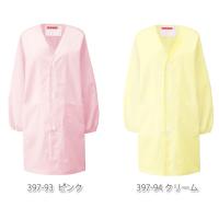 397 KAZEN カゼン 給食衣 エプロン 制菌加工 前開き 袖口ゴム 男女兼用 140 150 155 白 ホワイト ブルー ピンク イエロー グリーン サンアロー