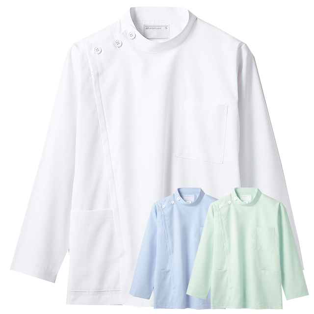72-951 住商モンブラン メディカルウェア ジャケット ケーシー 男性用 長袖 制菌加工 制電 防汚 透け防止 MONTBLANC 医療用 看護師 ナース 医師 ドクター 医者 薬剤師 白衣 メンズ 男子 横掛け ジャケット ホワイト ブルー グリーン