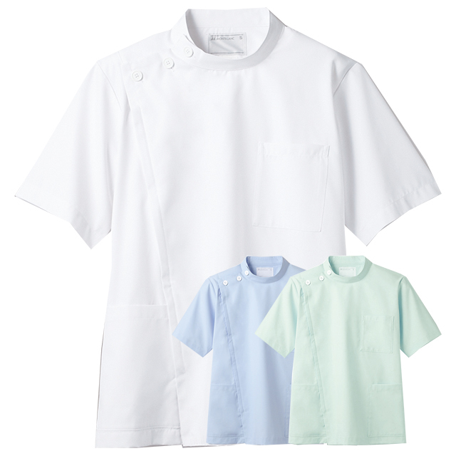 72-952 住商モンブラン メディカルウェア ジャケット ケーシー メンズ 男性用 半袖 制菌加工 制電 防汚 透け防止 MONTBLANC 医療用 看護師 ナース 医師 ドクター 医者 薬剤師 白衣 メンズ 男子 横掛け ジャケット ホワイト ブルー グリーン