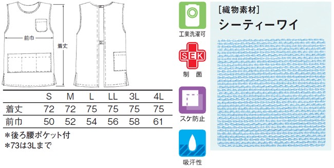 パンツスタイルにベストバランスのショート丈袖なし予防衣。立ったりしゃがんだりがとても楽なデザインです。収納力と利便性をアップしたポケット付きです。 (後ろ腰ポケット付)