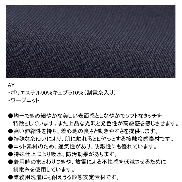 ●素材:AY ニット素材 ポリエステル90%キュプラ10%(制電糸入り)