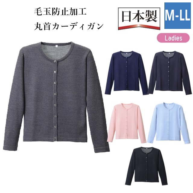 D1005 ディーフェイズ D-PHASE 抗ピル 丸首 カーディガン 日本製 毛玉防止 静電気防止 家庭洗濯可 アクリル ウール