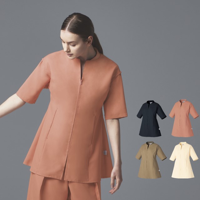 上品で控えめなVネックにセンタージップで着脱もらくちん。