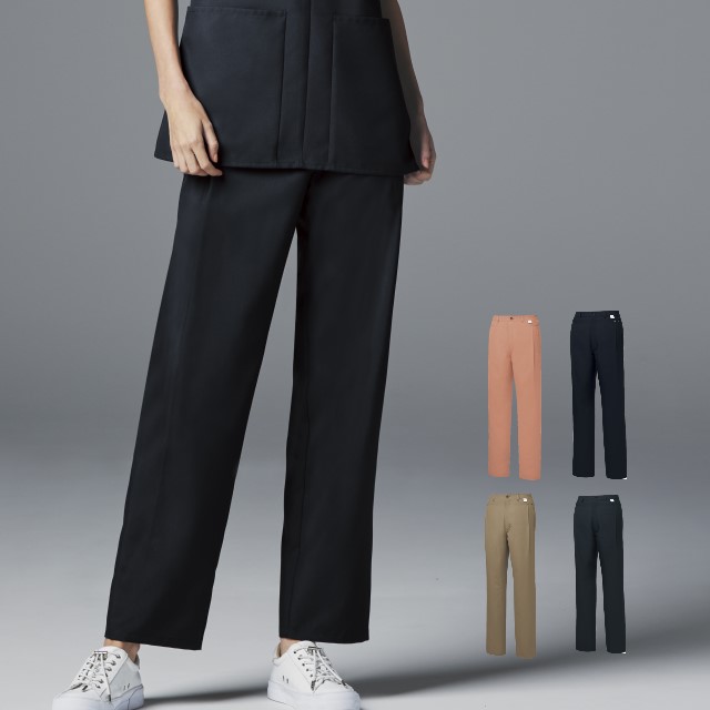 ●仕様:ウエストゴム、両脇ポケット、右ヒップポケット、前ファスナーあき