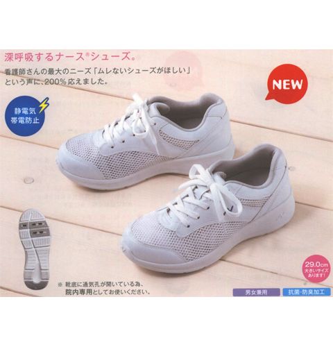 F-4966 富士ゴムナース ナースシューズ 男女兼用 院内専用 抗菌 防臭加工 静電気帯電防止 疲れにくい 通気性 衝撃吸収 クッション性 メッシュ フジゴム 医療用 看護師 介護 ユニセックス 病院 看護靴 紐靴 ナースクール 白衣ネット