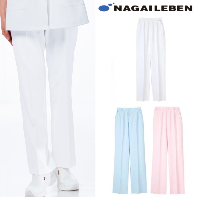 FT4403 ナガイレーベン ナースウェア パンツ 女性用 ストレート ノータック 脇ゴム 前ファスナー センタープレス ポケット付き ポリエステル100% 制菌加工 制電 吸水 防汚 透け防止 NAGAILEBEN 医療用 白衣ネット