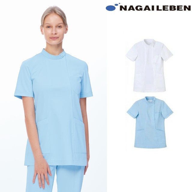 HS952 ナガイレーベン ナースウェア ジャケット 女性用 スタンドカラー 半袖 制菌加工 制電 吸水 防汚 ポケット NAGAILEBEN 医療用 看護師 歯科衛生士 レディース レディス 女子 立ち襟 チュニック 白衣ネット