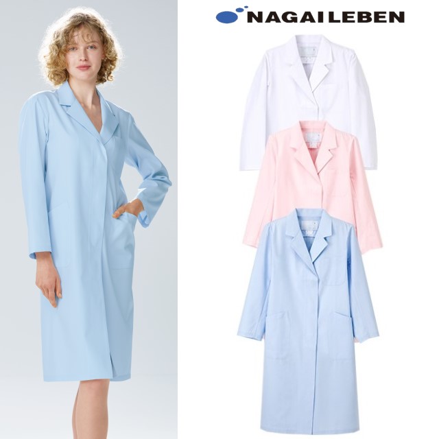 KEX5130 ナガイレーベン診察衣 シングルボタン 女性用 長袖 制菌加工 制電 吸水 防汚 業務洗濯可 NAGAILEBEN 医療用 医者 ドクター レディース レディス 女子 ドクターコート 白衣 ホワイト 白 ブルー 白衣ネット