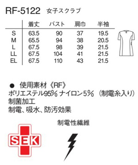 RF5122 ナガイレーベン ナースウェア スクラブ 女性用 半袖 PHSポケット 接触冷感素材 ストレッチ 吸水 防汚 業務用洗濯可 形態安定 制菌加工 NAGAILEBEN 医療用 看護師 介護 レディース レディス 白衣ネット