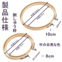 【製品仕様】刺しゅう枠;サイズ:8cm(内径7.8cm外径9.5cm)、10cm(内径9.4cm外径10.6cm);竹の自然な色