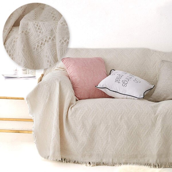 無地の色やフリンジのデザイン、シンプルで部屋の雰囲気に馴染みやすい。ソファーに掛けると、部屋に明るく、暖かい感じをあげる。実用性も美観性も備えている。