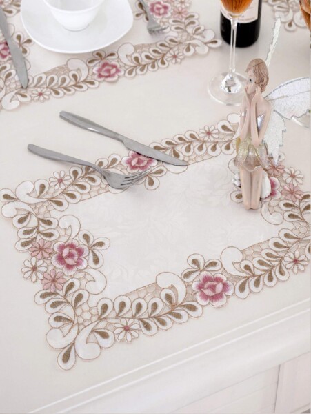 WooJoy 刺繍レーステーブルランナーエレガントなヴィンテージテーブルランナー、ドレッサースカーブキャビネットダイニングルームテーブル装飾 (30x45cm-4セット)