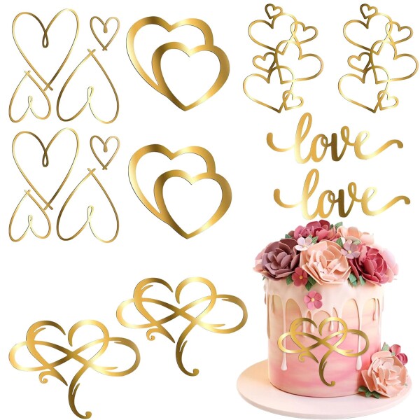 【ハート ケーキトッパー】おしゃれなハート型のケーキ飾りです。種類が豊富で、ゴールドの色は非常に明るくて、ケーキも一気にキラキラして、華やかに変身!