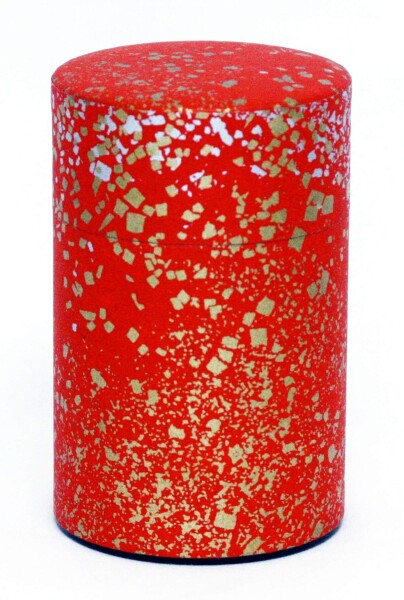 | 商品名 | 江東堂高橋製作所 茶筒 和紙和染缶 長型100g 金銀砂子(赤) #88 |