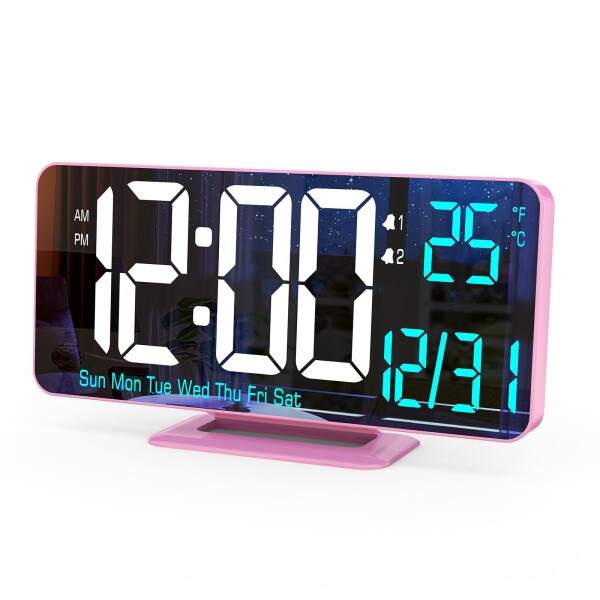 KOSUMOSU ピンクデジタル時計 6.7インチ デュアル目覚まし時計 調光機能/12/24時間表示/秒/日付/曜日/