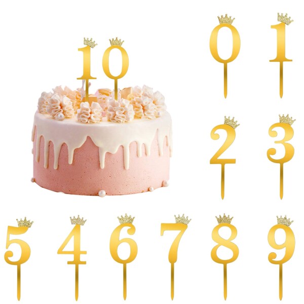ケーキトッパー 数字 ゴールド 番号0-9 誕生日 ケーキトッパー ケーキ 飾り キラキラ 王冠付き カップケーキトッパー ケーキ デコレーション 誕生日 結婚式 記念日 ウェディング (金)