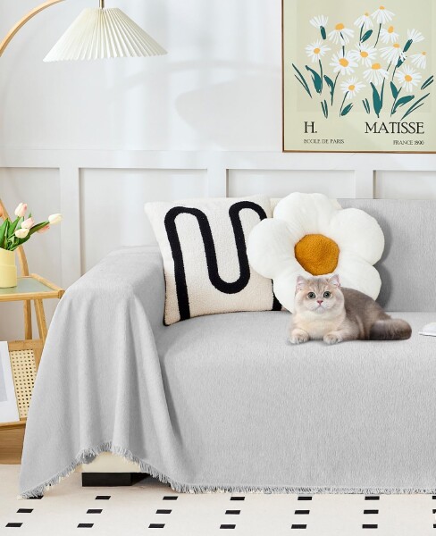 JUUE ソファーカバー 一人掛け マルチカバー ソファー 長方形 北欧風 おしゃれ シェニール 滑り止め マルチカバー ソファー 多機能 汚れ防止 犬猫対策 ベッドカバー カウチ ベッドカバー 毛布柔らかい 吸湿 通気 洗える 四季通用 (130*180CM&グレー)