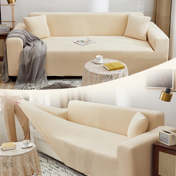 【だれでも簡単に装着可能】 ストレッチ性があるため、肘付きソファーやL字型ソファーなど、さまざまな形状に簡単対応。米色と浅灰色の落ち着いたカラーは、取り付けるだけでリビングや寝室をスタイリッシュに変えることができます。滑り止め機能も付いており、ずれにくく安心です。