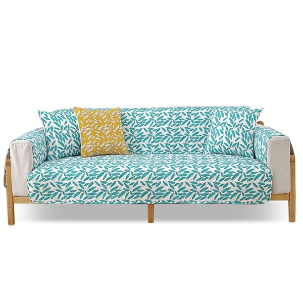 VanderHOME ソファカバー 肘付き ソファーシーツ ソファー掛け 布掛け 犬猫対策 マルチカバー 滑り止め 取り替え簡単 葉の柄 おしゃれ 四季適用 洗える ソファー保護 保護カバー 傷防止 爪とぎ防止 可愛い ブルー 3人掛け