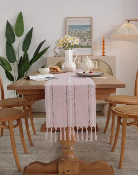 青未了 テーブルランナー 北欧 テーブルセンタークロス おしゃれ テーブルらんなー table runner テーブルセンター 布 食卓飾り タッセル 160 x 33cm 桜色