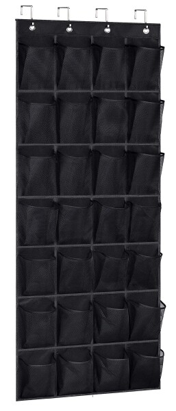 AOODA 28メッシュ大型ポケットドアシューズオーガナイザー、クローゼットスニーカーホルダーハンガー用ハンギングシューズオーガナイザー ブラック