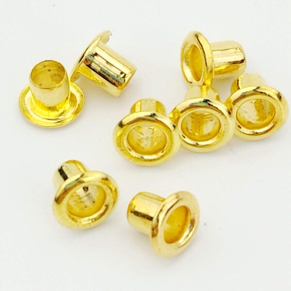 ミニソリッドブラスアイレット 数量は100個です 内径は約2.5mm、外径は5mm、バレルの長さは4mmです グロメットキットは人形の服、アクセサリーに適しています...