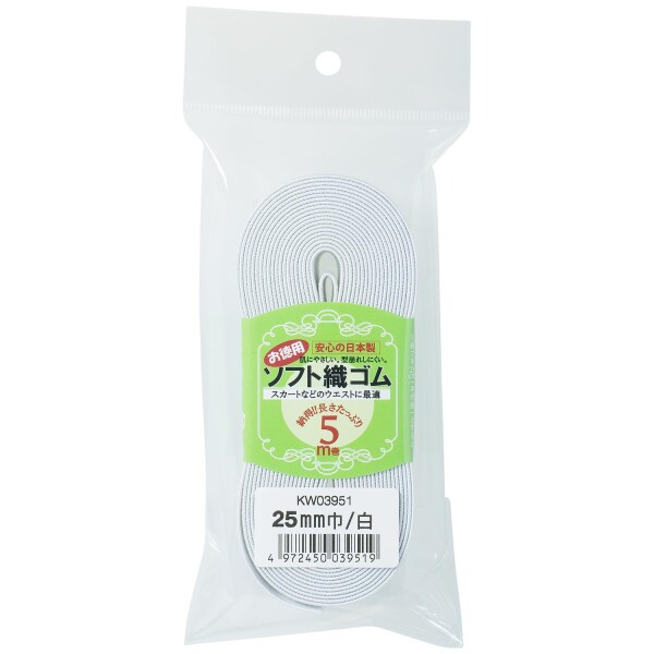 | 商品名 | ソフト織ゴム 5m巻 白 (25mm, 白) ウエストゴム ウエスト 裁縫 裁縫道具 手芸 スラックス スカート パジャマ |