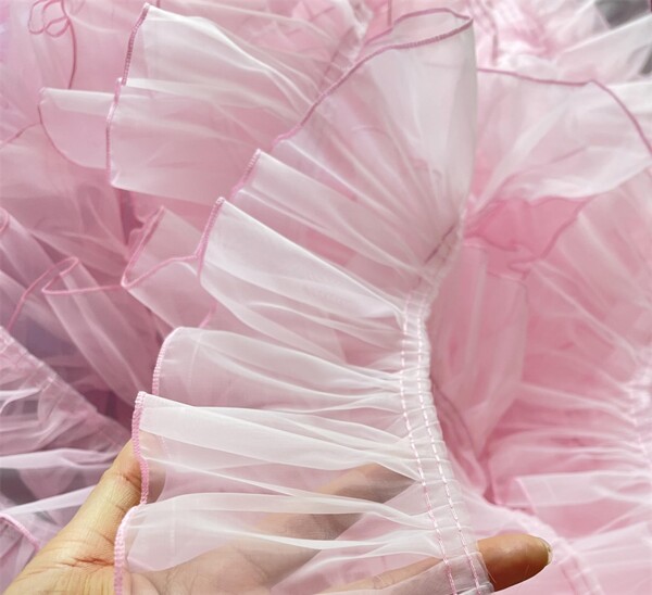 幅10cm 長さ4.5m オーガンジー フリル 生地 かわいい プリーツ リボン 黒 白 紫 レース シースルー 透け 装飾 衣装 コスチューム ハンドメイド ドレス 創作 社交 ダンス ヒップホップ 舞台衣装 発表会 仮装 無地 スマホ ストラップ お遊戯会 布地 DIY お花 シフォン (ピンク)