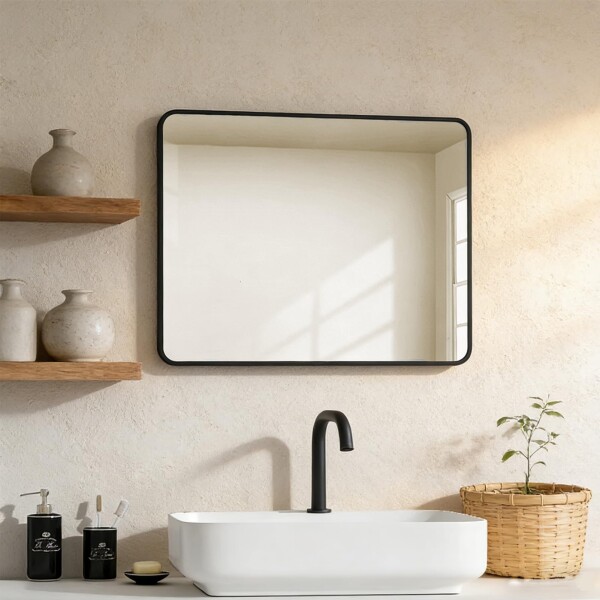 WH-IWOS壁掛け鏡 全身 姿見鏡 化粧鏡 アルミ合金フレーム 飛散防止加工 丸角 おしゃれ 割れない 壁掛けミラー スタンドミラー すがた鏡 全身ミラー 壁装飾 省スペース 持ち運び便利 コンパクト収納 洗面所 化粧 浴室 お風呂 玄関 ブラック/幅50×高さ70cm
