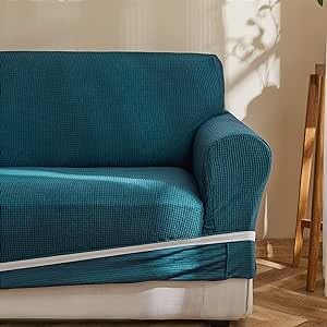 Topfinel ソファーカバー 3人掛け 肘付き 無地 北欧風 ストレッチ フィットタイプ 伸縮素材伸び良く 滑り止め 柔らかい 犬 猫 傷 防止 超便利 四季適用 (ピーコックブルー)