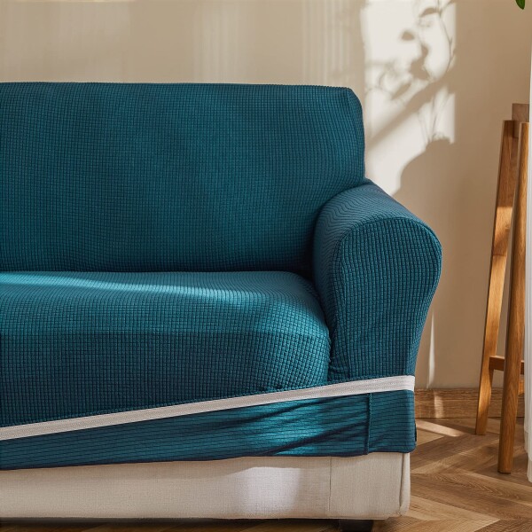 Topfinel ソファーカバー 1人掛け 肘付き 無地 北欧風 ストレッチ フィットタイプ 伸縮素材伸び良く 滑り止め 柔らかい 犬 猫 傷 防止 超便利 四季適用 (ピーコックブルー)